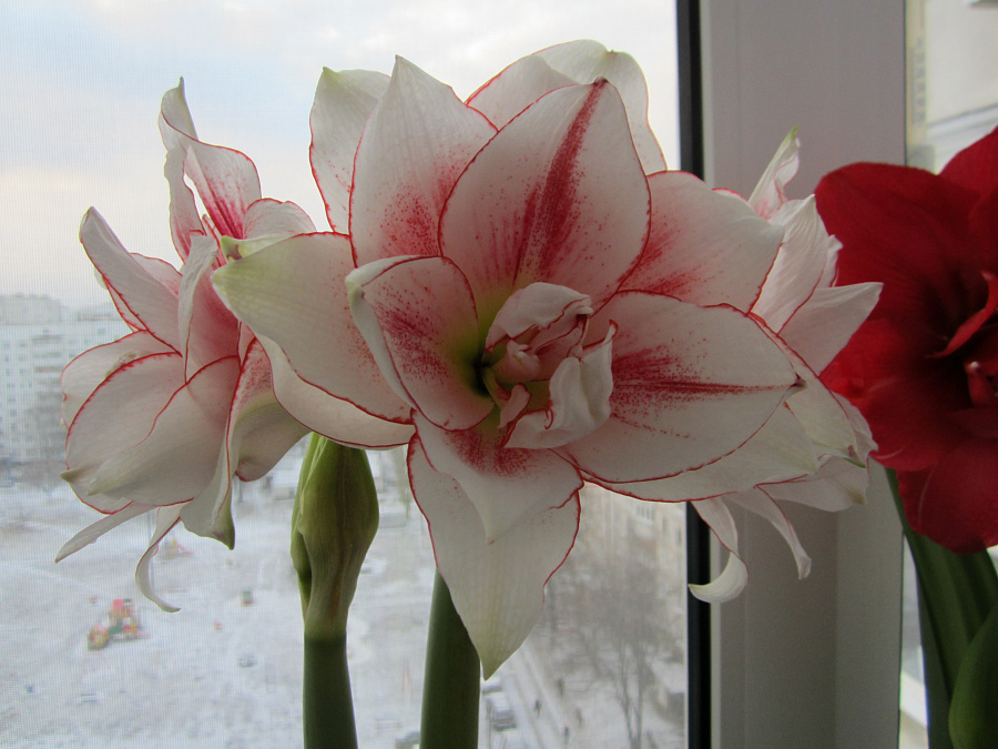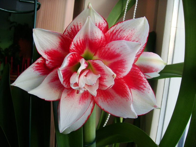 Амариллис махровый Элвас - это великолепное растение, которое поразит вас своей красотой и изысканностью. Его стебель достигает высоты 50-70 см, а цветки белого цвета с красными штрихами в центре привлекают внимание своей изысканной окраской. Листья амариллиса махрового Элвас имеют элегантную форму, что делает его еще более привлекательным для глаз.