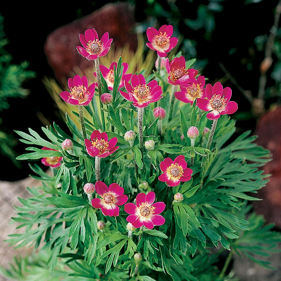 Анемона многонадрезная Аннабелла Дип Роуз - это изысканное растение с ярко-розовыми цветками и золотистыми тычинками, которое поражает своей красотой. Ее высота достигает 30-40 см, что делает ее идеальным выбором для газонов, групповых посадок или одиночных насаждений. Листья анемоны весной радуют глаз своей ярко-зеленой окраской, создавая уютный уголок в вашем саду.