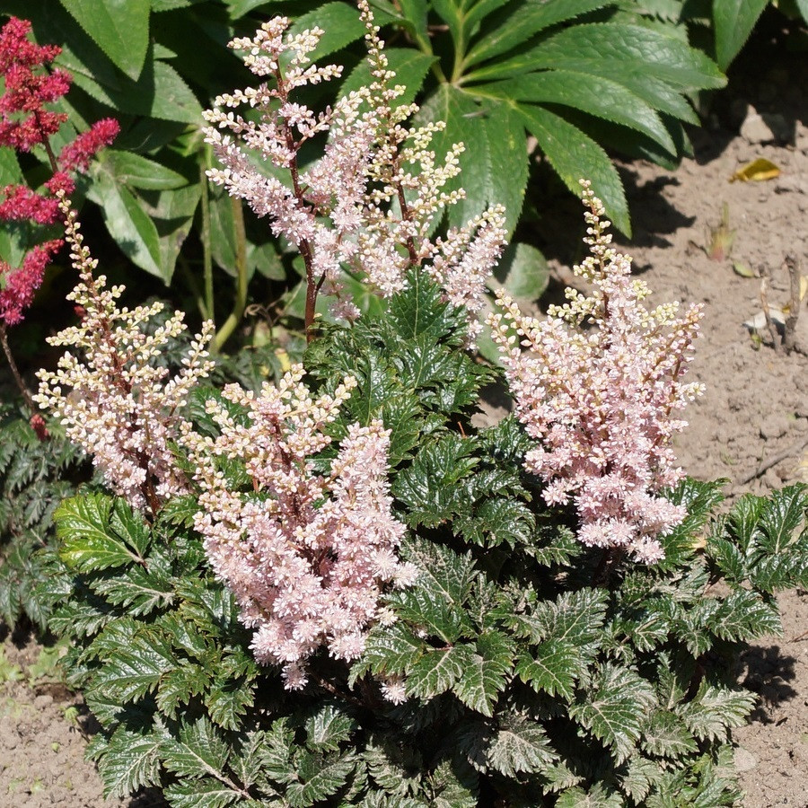 Астильба курчавая перкео - это изысканное растение, которое поразит вас своей нежной кремово-нежно-розовой окраской цветков. Сорт perkeo отличается компактным размером до 20 см в высоту и до 50 см в диаметре, что делает его идеальным выбором для газонов, групповых посадок или миксбордеров. Листья астильбы имеют темно-зеленую окраску как весной, так и летом, создавая красивый контраст с цветами.