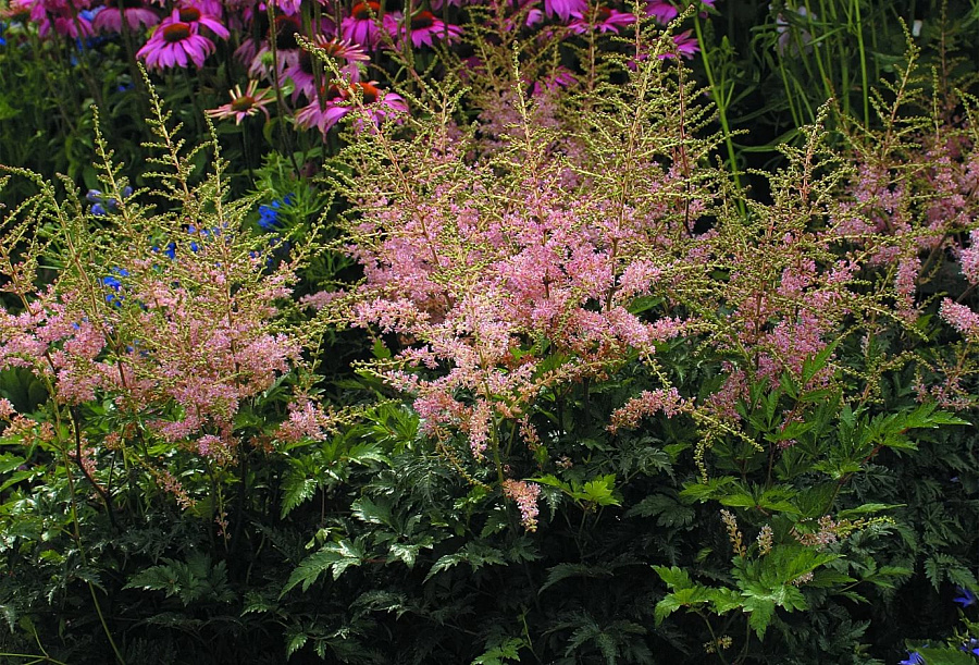 Рассада астильбы «Хенни Граафленд» (Hennie Graafland) больше раскидывается в ширину (до 60 см), чем в высоту (до 45 см). Высаживать ее лучше в полутень или на полностью затененные места. Почва должна быть хорошо дренированной, плодородной и увлажненной. Используют цветки из семян астильбы «Хенни Граафленд» для создания бордюров и цветников. Цветение начинается в середине июля и длится на протяжении месяца. Пышный кустарник сверху украшают соцветия из меленьких цветочков розового цвета. В длину они достигают 18 см. Листва рассады астильбы «Хенни Граафленд» темно-зеленая и блестящая.