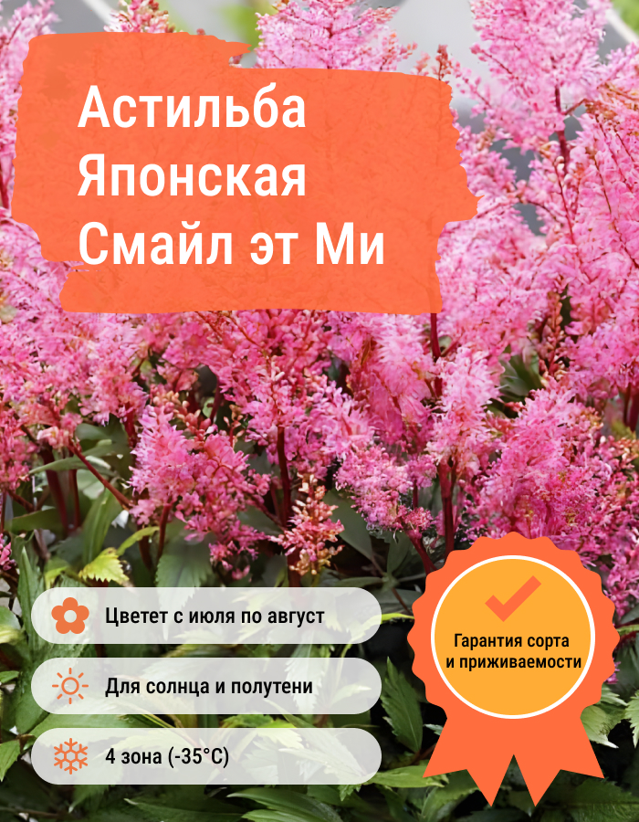 Это растение отличается высокой морозостойкостью и легкостью в выращивании, что делает его идеальным выбором для начинающих садоводов. Астильба японская "Смайл эт ми" также устойчива к болезням и вредителям, что обеспечит ей долгую и здоровую жизнь в вашем саду. Приобретите это растение и добавьте немного восторга и красоты в свой уютный уголок природы!