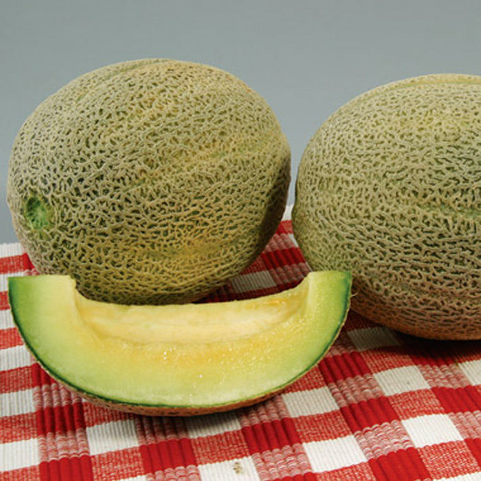 Семена дыни "Канталупа зеленая F1" — сорт, отличительной чертой которого является кремовато-зеленоватая окраска мякоти. Средняя масса плодов не превышает 1,2 кг. Они имеют округлую форму, сегментированы. Кожица покрыта густой сеткой. Мякоть обладает высокими вкусовыми характеристиками: плотная, хрустящая, очень сладкая и ароматная. Сорт семян дыни "Канталупа зеленая F1" характеризуется хорошей транспортабельностью и может долго храниться. Плоды считаются крайне полезными, так как содержат большое количество полезных веществ.