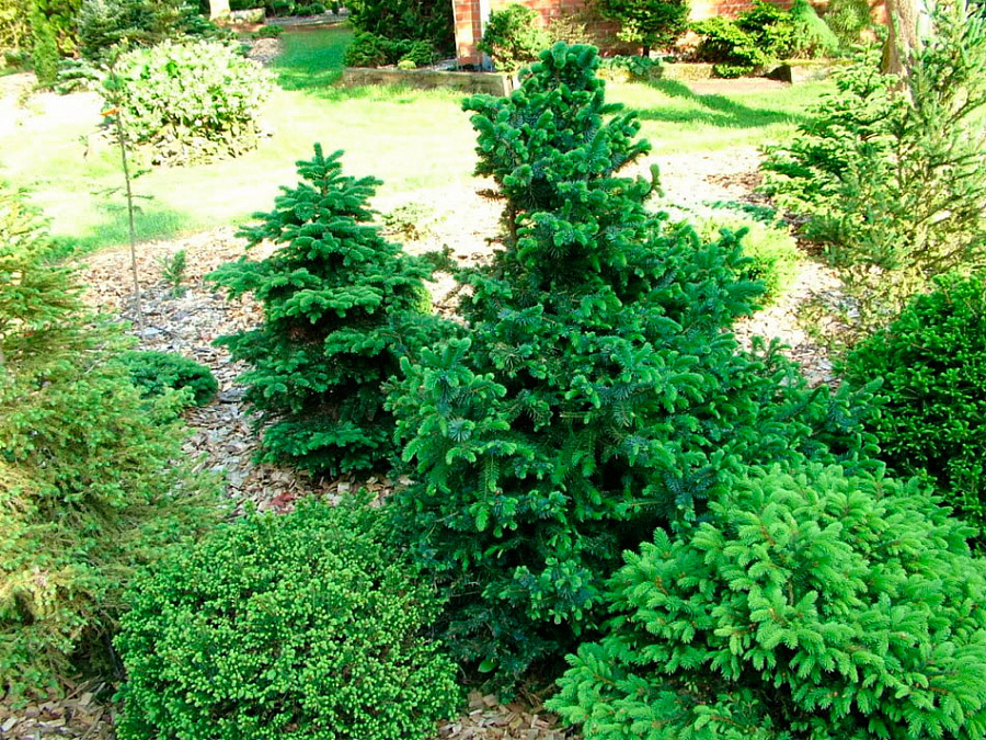 Саженцы Ели ситхинской Шугар Лоф (Sugar Loaf) образуют карликовое растение с красивой пирамидальной формой густой кроны. Высота хвойника 1 метр в 10 лет и не более 1,5 метров в более взрослом возрасте. Кончики ветвей слегка закручиваются по спирали, придавая рисунку кроны необычный вид. Иголки короткие, острые, сине-зеленого цвета. Молодой прирост нежно-салатовый. Растение неприхотливо. Дизайнеры рекомендуют высаживать ель на альпийские горки, в рокарии, сочетая с ирисами, розами, спиреей, барбарисом.