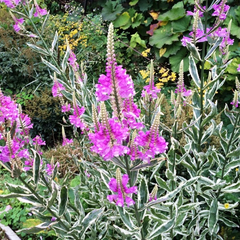 Рассада физостегии виргинской Вариегата (Variegata) представляет собой пестролистное растение с нежными розоватыми цветками, которые собраны в похожие на колоски соцветия. В последнее время этот сорт часто используется профессиональными цветоводами для декорирования парков и общественных садов, но и в домашнем палисаднике он вполне уместен. Легко размножается делением куста или семенами. Цветоносящие стебли физостегии виргинской Вариегата в высоту достигают 90 см, при этом около 30 см занимает само соцветие. Цветение начинается с середины лета и может продолжаться до сентября.