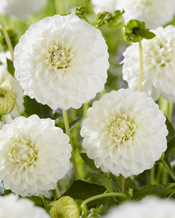 Георгина помпонная Petra's Wedding - это изысканное растение с белоснежными цветками, которые напоминают свадебные букеты. Ее стебли прочные и прямые, достигающие в высоту до 70 см. Листья георгины имеют интересную форму и создают уникальный акцент в саду.