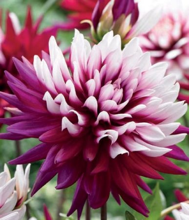 Клубни георгины махровой Реббеса Ворлд (Dáhlia variabilis Rebbeca's World) позволят вырастить в саду куст с цветами оригинальной раскраски. Они соединяют белый и пурпурный цвет в разных пропорциях. Это может быть белый цветок с красным пятном. Встречаются цветки, наполовину окрашенные в пурпурный, другая часть содержит больше белого. Куст требует подвязки, иначе его стебли могут упасть на землю. Высаживают клубни в прогретый грунт на глубину 10 сантиметров. Расстояние между кустами 60 сантиметров. Георгину выращивают одиночно или в миксбордерах. Цветы хорошо держатся в срезке.