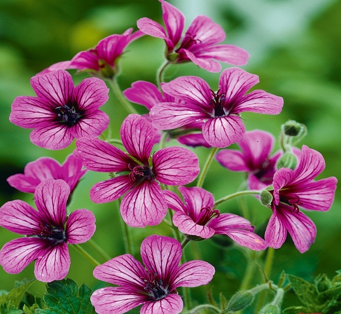Рассада герани гибридной Sue Crug (Аистов клюв Geranium hybrid) высаживается ранней весной или в начале лета в питательную, влажную почву. Место для цветника выбирают солнечное или частично освещенное. Ценится сорт за то, что формирует компактные плотные кусты с эффектными ажурными листьями, которые сохраняют свою декоративность до самой зимы. Но все же наибольшую декоративность герань гибридная Sue Crug приобретает с июня до августа, когда распускаются красивые цветочки. Бутончики диаметром 3-5 см отличаются нежно-розовым окрасом и красивой формой. Высота растение обычно не превышает 40 см.