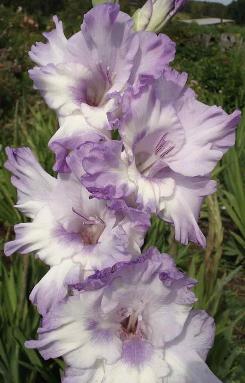 Луковицы гладиолуса гибридного Blue Frost высаживают в прогретую почву в конце апреля – начале мая на расстоянии до 35 см друг от друга. Растение формирует высокий мощный стебель до 150 см, на котором  одновременно распускается по 8-9 бело-голубых, с сиреневым отливом, крупных цветков.  Лепестки бархатные с закрученными краями и легкой гофрировкой. Смотрятся соцветия эффектно и одновременно нежно. Сорт гладиолусов гибридных Blue Frost великолепно себя чувствует как в одиночных, так и в групповых посадках, свежих букетах.
