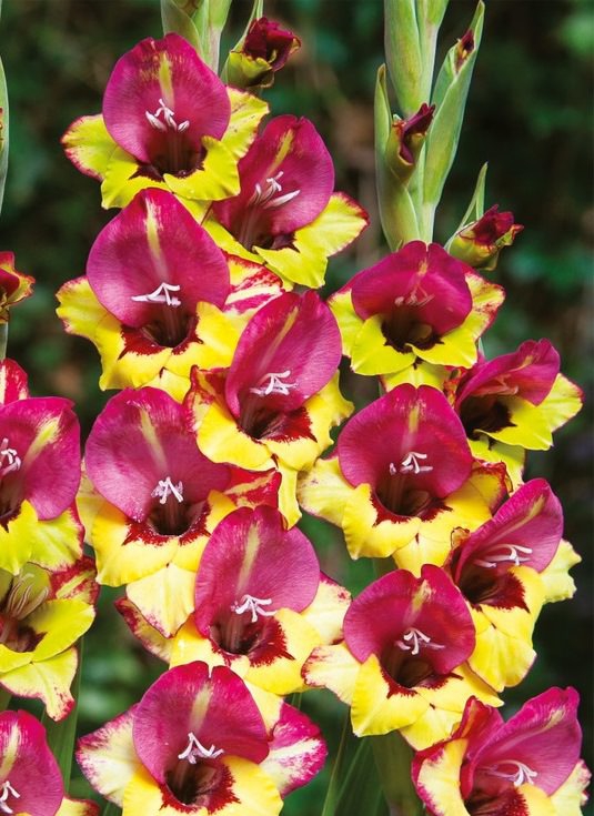 Луковицы гладиолуса гибридного Vasto порадуют необычной яркой окраской цветов, из которых получаются роскошные букеты. Высота взрослого растения варьируется от 50 до 60 сантиметров. На крепких стеблях формируется около 10-15 цветов, состоящих из желтых и красных лепестков. Это растение отлично смотрится в составе смешанных и групповых посадок. Высаживая луковицы гладиолуса гибридного Vasto, следует выбирать места с хорошим освещением, но легкой полутенью. Это гарантирует длительное цветение. Также важна защита от сквозного ветра, который может сломать цветоносы.