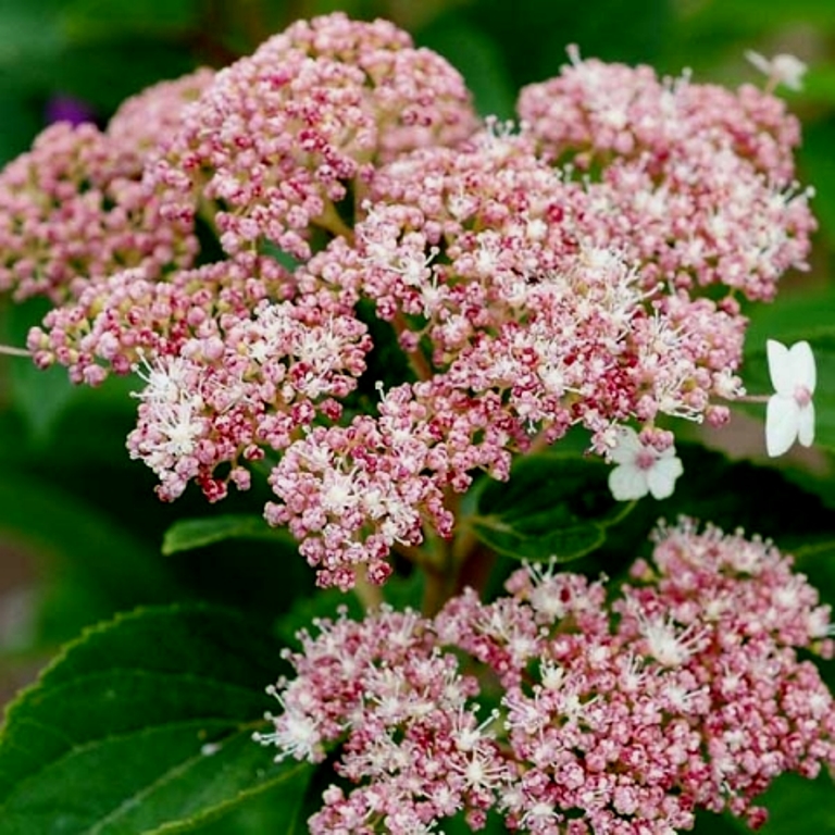 Саженцы гортензии древовидной Пинк Перкушн (Pink Percussion) превращаются в удивительный крупномер. Ширина и высота его одинаковы – около 130 сантиметров. Округлая крона отличается изумрудно-зеленым цветом. Нежные бутоны раскрываются в июне, окраска со временем меняется с розового на белую. Осенью растение приобретает невероятный сиренево-розовый тон. Диаметр соцветий редко превышает 15 сантиметров. Чтобы декоративность растения не снижалась, необходимо соблюдать определенные правила: