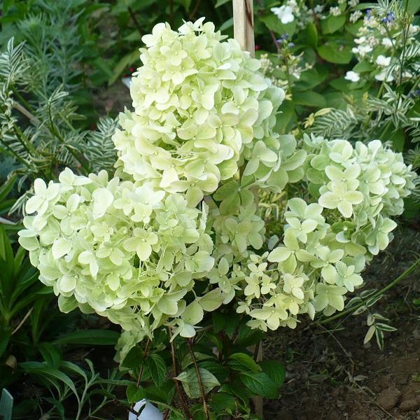 Саженцы гортензии метельчатой Diamantino (Диамантино) отличаются продолжительным цветением – с июня по сентябрь. Этот крупномер может вырасти до 120 сантиметров. Таких же размеров достигает и объем кроны. Сорт имеет ряд достоинств: