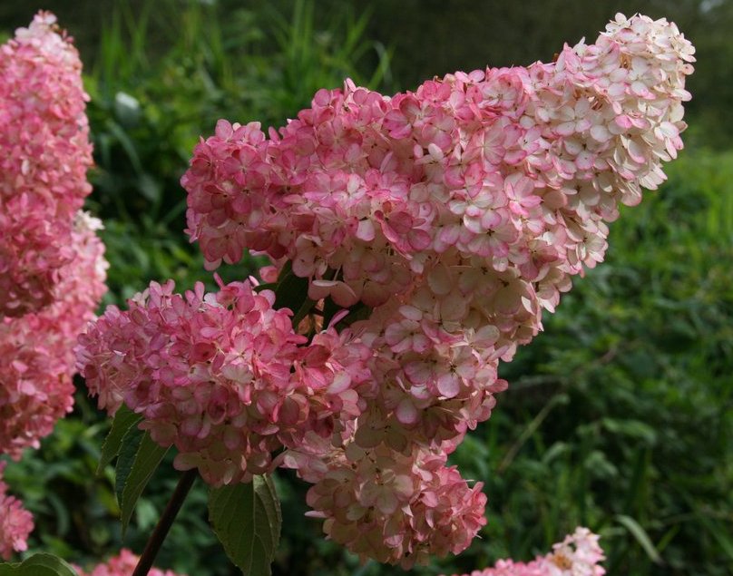 Саженцы гортензии метельчатой Ренхи (Renhy) вырастают в невысокие но пышные кустарники с воздушными венчиками цветов. Максимальная высота растения 1,5 м. Процесс цветения очень интересен: множество белых бутонов постепенно распускаются и меняют цвет на темно-розовый. В результате на кистях соцветий отражается этот плавный переход. Листья зеленые, продолговатые. Побеги направлены вверх. Гортензия метельчатая Ренхи цветет несколько недель.
