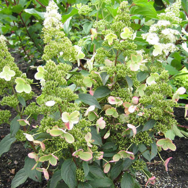 Гортензия метельчатой Мэджикал Гималая летом украшена внушительными зеленовато-белыми цветками в метельчатых соцветиях. Такое щедрое цветение происходит на побегах сопутствующего года, обычно с июля по сентябрь. Рекомендуется высаживать растение на солнечном или полутенистом месте и предпочтительно на плодородном, кислом, влажном, дренированном грунте.