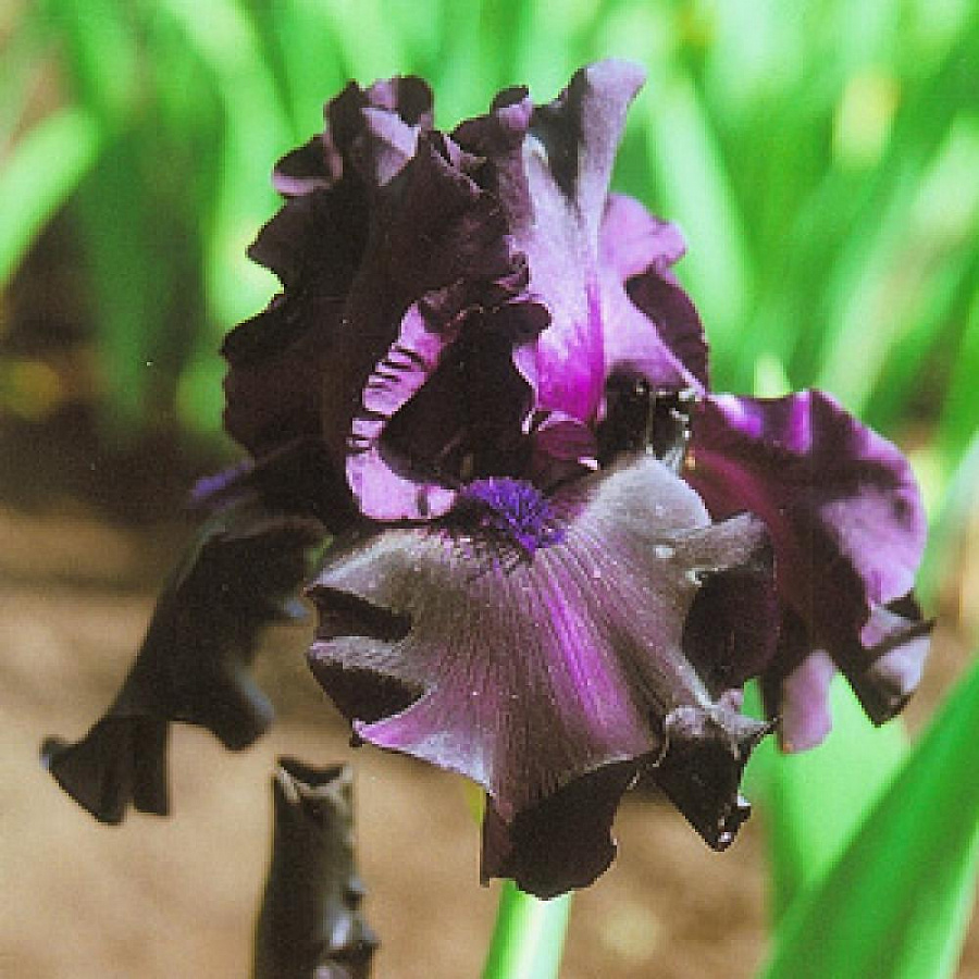 Рассада Ириса Гост Трейн (Ghost Train) станет элегантным, необычным, экстравагантным аксессуаром вашего сада. Декоративное растение достигает в высоту 90 см, отличается необычным окрасом цветков. Бутоны крупные, хорошо удерживают форму даже после срезки, долго сохраняют эстетические качества. Цвет лепестков тёмно-фиолетовый, нижние практически чёрные, гофрированные.