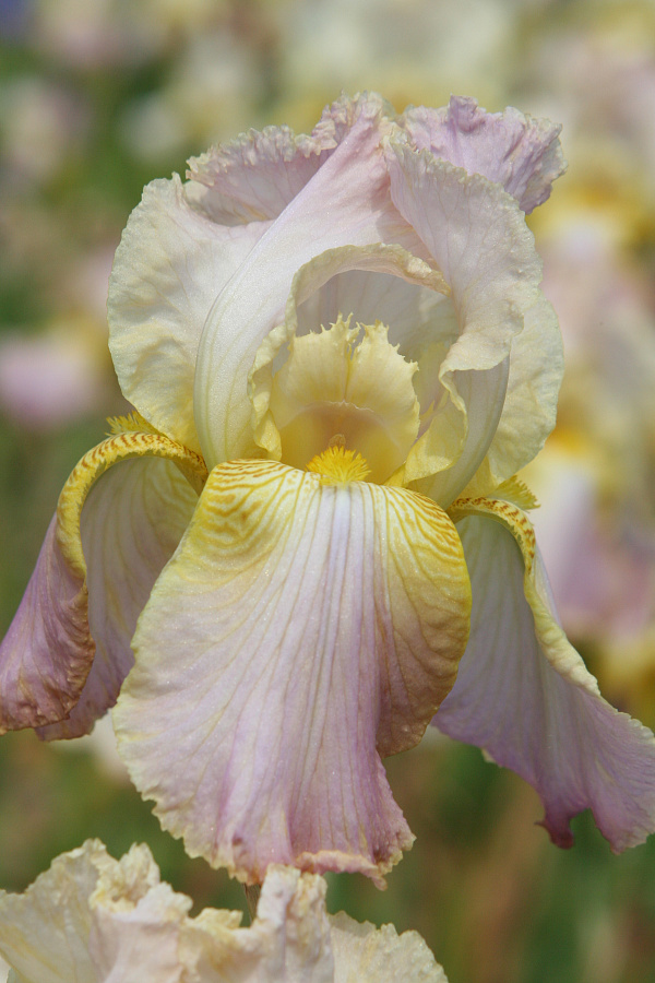 Рассада Ириса Шантильи (Chantilly) станет вашей любимой, если вы цените нежный эстетизм, являетесь поклонником спокойных, сдержанных тонов. Гармонично собранные изящные цветки издалека напоминают благородные кружева. Основной окрас сорта – бледно-розовый, есть примеси жёлтого. Преимущества декоративного растения: