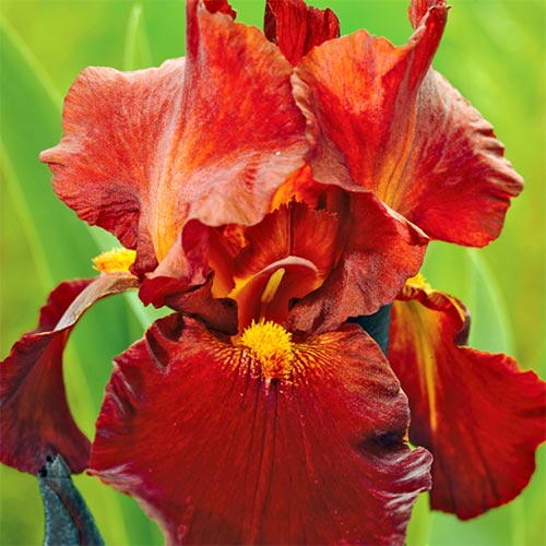 Саженцы ириса Султанс Пелас (Sultan's Palace) представляет собой красивоцветущее многолетнее травянистое растение, которое достигает в высоту 80-100 см. Диаметр цветка 13-15 см. Верхние лепесточки кроваво-красные, собраны в изящный купол, нижние лепестки тёмно-красные с чёрной опалиной по краю, бородка ярко-жёлтая. Период цветения май-июнь, продолжительность 2-3 недели. Ирисы светолюбивые растения, самое лучшее место для их посадки — хорошо освещённый участок, защищённый от застоев воды и ветров. Прекрасно подходят для срезки, широко используются для украшения клумб на садовых участках.