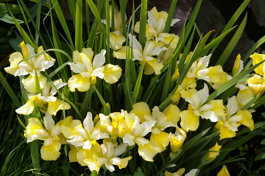 Саженцы сибирского ириса Йеллоу Тейл (Iris sibirica Yellow Tail) привлекательны для цветоводов неприхотливостью в выращивании. Все, что им необходимо, – умеренный полив, полутень, периодическое внесение удобрений, хотя можно обойтись и без них. Линейные темно-зеленые листья сохраняют декоративность до самых заморозков, оставаясь в форме компактного кустика. Цветок крупный, до 14 см в диаметре. Первые бутоны распускаются в мае. Цветение длится и в июне. Стандарты белые со светло-желтыми полосами. Фолы лимонные, более насыщенные в центре и светлее по краям. Высота цветоносов около 75 см.