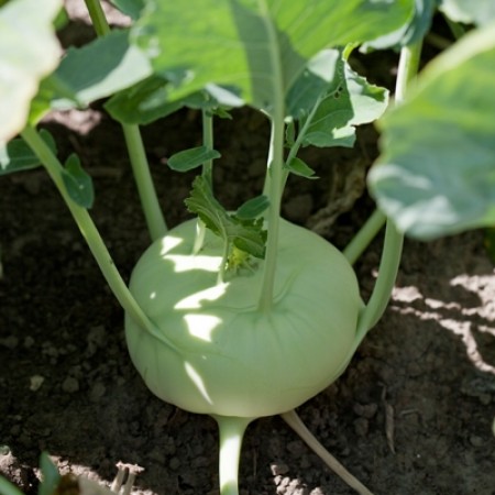 • хорошо переносит заморозки. Плоско-округлой формы, белые стеблеплоды капусты кольраби Терек обладают высокой однородностью. Средняя масса – 0,5-1,3 кг. Светлая мякоть нежная, сочная, не острая. Используют для приготовления салатных смесей, овощных супов, рагу и прочего. Семена капусты кольраби Терек можно получить из взрослого растения на второй год жизни, когда оно уже способно давать цветоносные побеги.