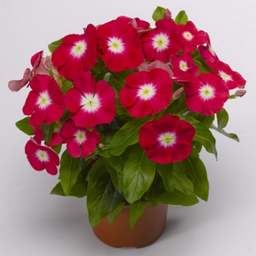 Катарантус Sunstorm Red Halo - это великолепное растение с красивыми красными цветками, которые радуют глаз своим ярким оттенком. Высота этого растения составляет 20-25 см, что делает его идеальным для одиночных посадок. Листья катарантуса имеют интересную форму и придают растению особый шарм.
