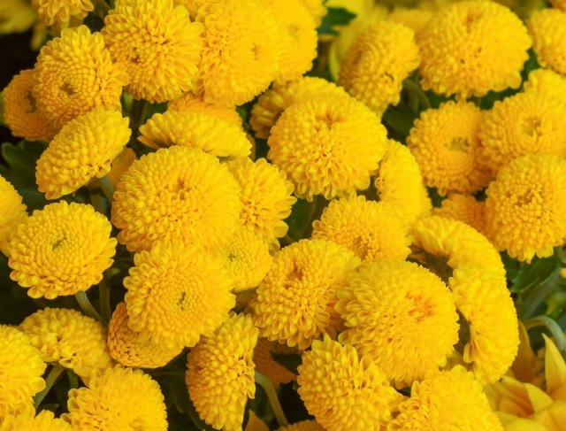 Семена хризантемы девичьей сорта Голден Бол (Golden ball) подходят для украшения клумб, оформления рабаток и выращивания цветов для составления букетов. Во время цветения на компактном растении появляются пышные желтые соцветия. Рассада хризантемы неприхотлива, с ее выращиванием справятся начинающие садоводы. Чтобы кусты приобрели красивую форму, необходимо высаживать их на расстоянии не менее 20 см друг от друга. Высаживать семена хризантемы Голден Бол можно весной или осенью. Для размещения кустов подходят затененные участки легкой почвы с небольшим содержанием извести. Цветение продолжается с июля по сентябрь.