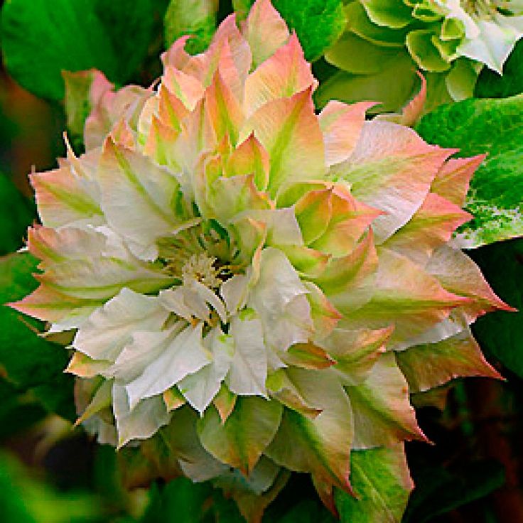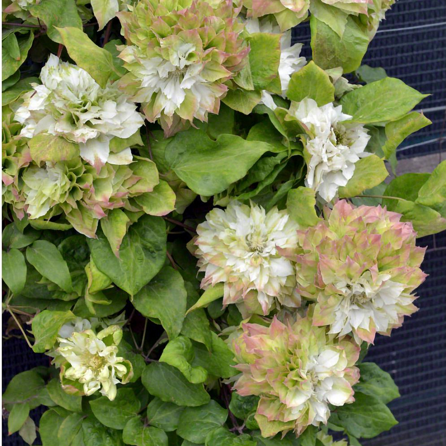 Для выращивания саженцев клематиса гибридного Сен-Но-Казе (Sen-no-kaze) наиболее подходящими считаются солнечные, защищенные места. Почва должна быть плодородной, рыхлой, супесчаной или суглинистой, однако глинистая, тяжелая почва не подойдет. Цветение обильное, начинается в мае и продолжается, до конца июня. Диаметр цветка колеблется в пределах 11-14 см. Цветки махровые имеют белых окрас со светло-зелеными и розовыми оттенками. Клематис гибридный Сен-Но-Казе (Sen-no-kaze) характеризуется умеренным ростом. Высота взрослого растения достигает 100-150 см. Применяют для благоустройства и озеленения балконов, террас, лоджий, в одиночных и групповых посадках.