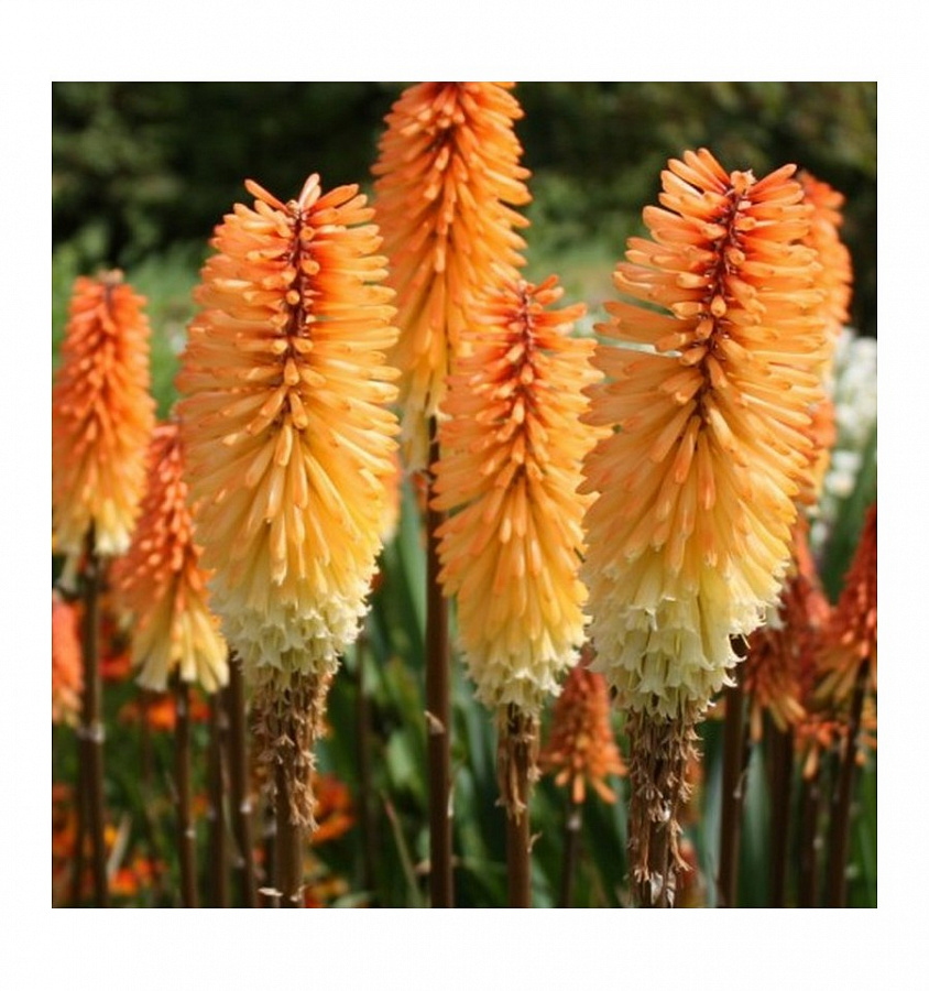 Рассада книфофии ягодной Pepsical Mango (Пепсикал Манго) разбавит жаркой экзотикой любой сад, цветник, альпинарий, дорожку у дома. Яркое африканское растение будет цвести уже в июне (до 30 - 50 дней). Этот яркий тандем скромных узких листьев розеточного типа и красочных соцветий строгой геометрии привлекает к себе внимание и людей, и насекомых. Прекрасно подходит для цветовых акцентов при декорировании. Куст высотой до 30 см, листья сочного зеленого цвета. Корневища требуют пересадки на зиму. Преимущества сорта: