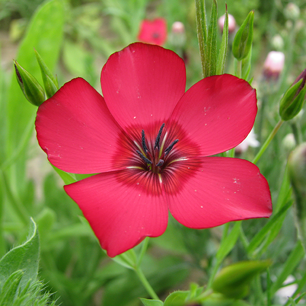 Семена льна крупноцветкового "Рубрум" используют в cмeшaнныx цвeтникax, микcбopдepax нa клумбax и paбaткax. Растение отличается компактными размерами. Высота кустика варьируется от 30 до 50 см, а ширина — около 20 см. Цветочки насыщенного алого цвета, диаметром 3-4 см, шелковистые. Радуют глаз с июня до конца августа. Сорт холодостоек, неприхотлив, лучше всего растет на солнечных участках. Выращивают лен крупноцветковый "Рубрум" посевом семян непосредственно в открытую почву в апреле — мае или под зиму. Укрытия на зиму не нужно.
