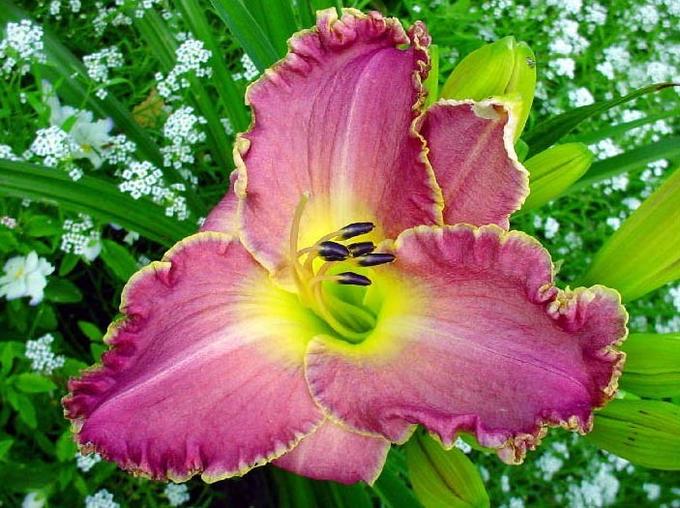 Рассада лилейника гибридного Clothed in glory порадует эффектным видом цветов, состоящих из нежно-розовых лепестков с гофрированными краями. К центру окраска лепестков меняется на желтую. Этот сорт используется для оформления садовых клумб, украшения бордюров и для получения роскошного материала для составления букетов. Для посадки рассады лилейника гибридного Clothed in glory лучше подходит плодородная почва. Места должны быть хорошо освещены и иметь защиту от ветра. Благодаря морозоустойчивости растение не нуждается в зимнем укрытии.