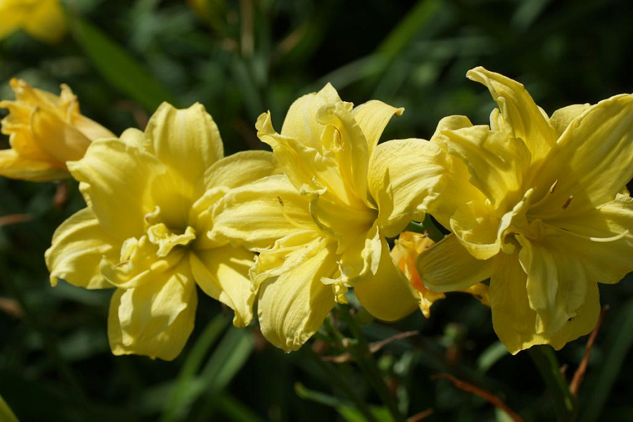 Рассада лилейника Дабл Ривэ Вай (Double River Wye) удивительный сорт, для которого характерно обильное цветение. В этот период на нем формируются махровые цветки лимонно-желтого оттенка. Растение относится к разновидностям дневного типа цветения. Бутоны на нем распускаются в конце июля и радуют взор окружающих в течение 2 месяцев своими нежными яркими цветками. В диаметре их размер составляет 13 см. Лилейник способен хорошо зимовать независимо от региона. Для укрытия используется невысокий слой мульчирования. Остальную защиту корням и стеблям предоставляет снежный покров.