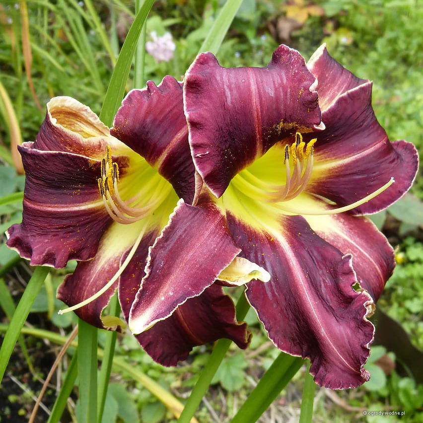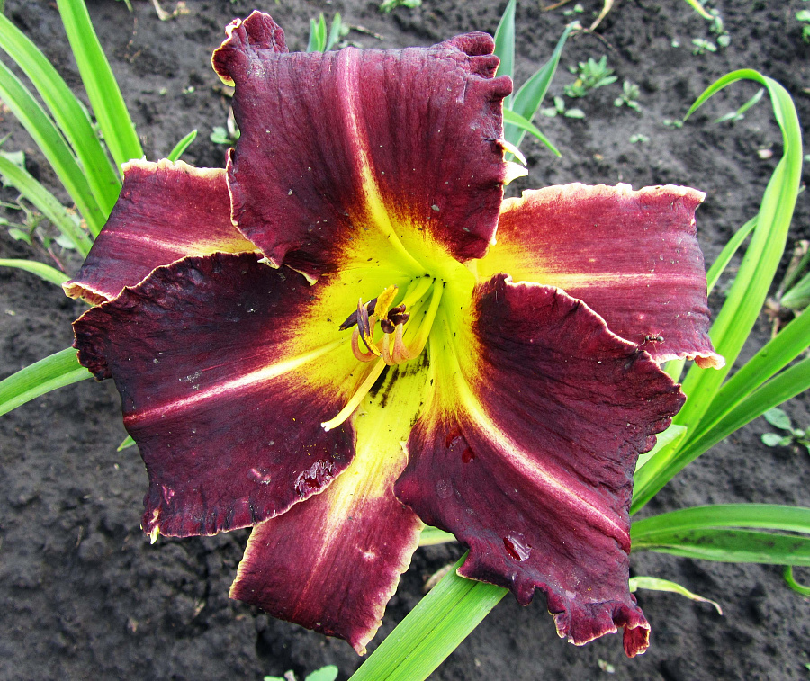 • Окраска цветка : Чёрно-красная с зеленым горлом