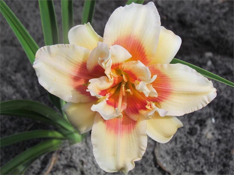 Окраска цветка : Кремово-розовый с кирпично-красным глазом