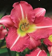 Саженцы и рассада Лилейника гибридного Матрёшка (Hemerocallis) подойдут желающим украсить свой сад яркими цветами, которые видно издалека. Этот сорт отличается крупными соцветиями (до 12 см в диаметре) и оригинальной расцветкой. Его лепестки малиновые с лиловым отливом, по центру каждого из них проходит белая полоска, а центр цветка ярко-желтый. Такое сочетание позволяет представителям этого сорта находиться на центральных позициях в композициях.
