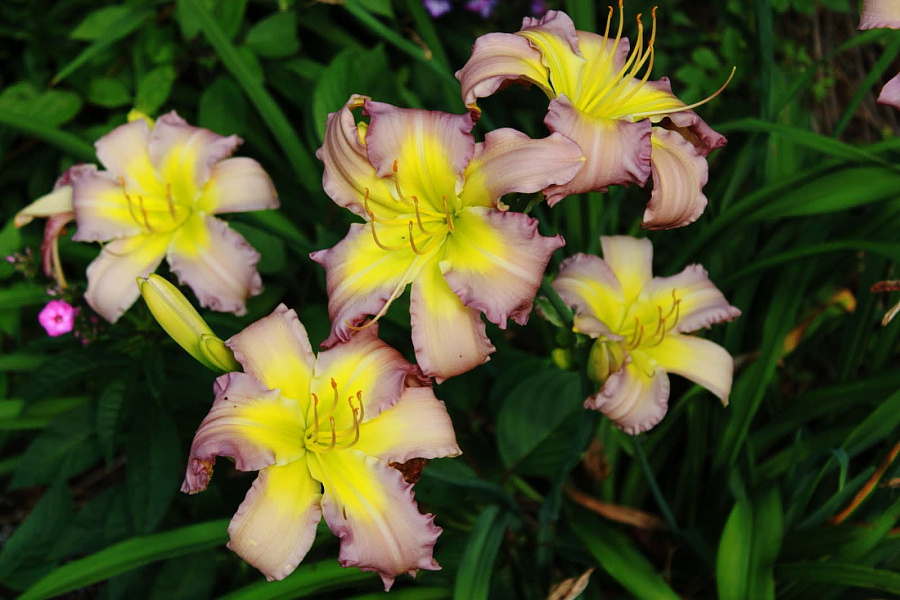 Рассада лилейника гибридного Regency heights порадует эффектной расцветкой цветов – края лепестков имеют сиренево-розовый оттенок, который к середине переходит в желтый. На каждом кусте образуется большое количество бутонов, благодаря чему процесс цветения кажется непрерывным. Рассада лилейника гибридного Regency heights сочетает красоту и неприхотливость. Сорт пользуется популярностью благодаря простому уходу и устойчивости к неблагоприятным условиям. Растения подходят для городского озеленения и оформления берегов водоемов. Этот сорт могут смело выбирать начинающие садоводы и те, кто не может часто посещать загородный участок.