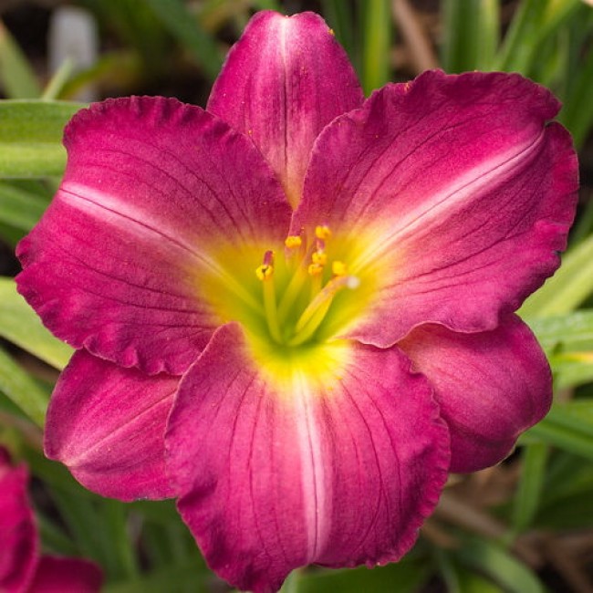 - цветки диаметром до 12 см. Семена, собранные после цветения, могут использоваться для проращивания рассады. Лилейник Силоам Роял Принц цветет темно-пурпурными бутонами с небольшим зеленым горлом. Лепестки по краям гофрированные, а посередине каждого проходит белая линия. Корни в открытом грунте неплохо переносят зиму, а благодаря особому строению довольно долго могут обходиться без полива.