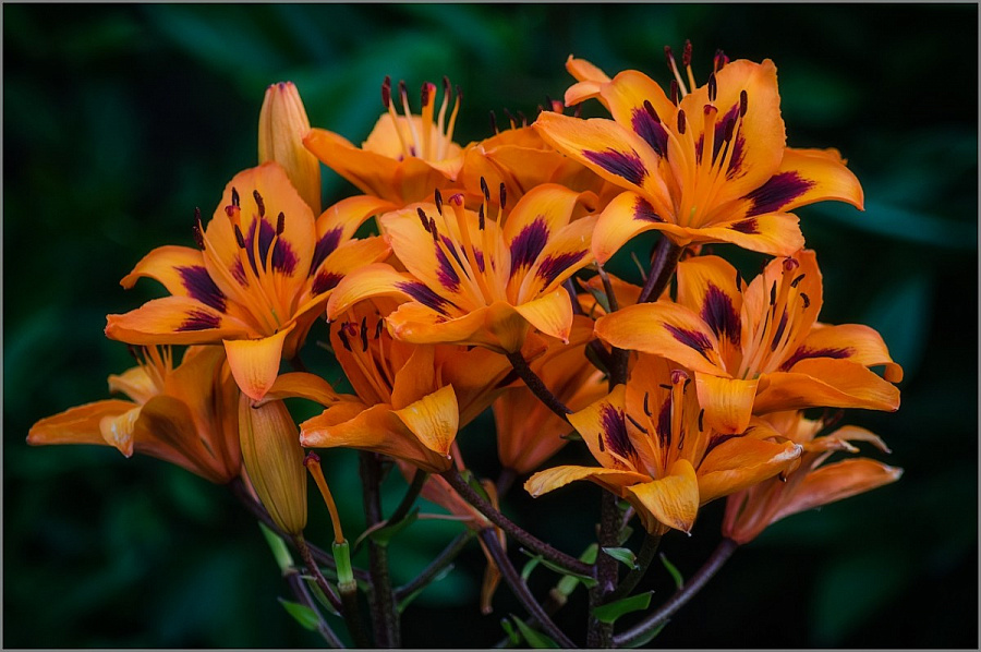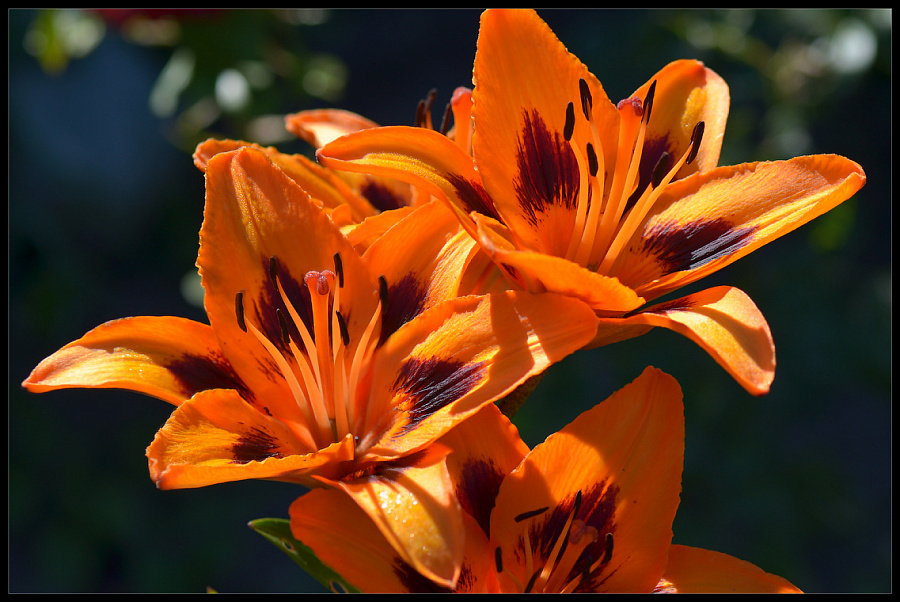 Окраска цветка : Цветки с широкими насыщенно-оранжевыми лепестками, по центру эффектное коричневое пятно
