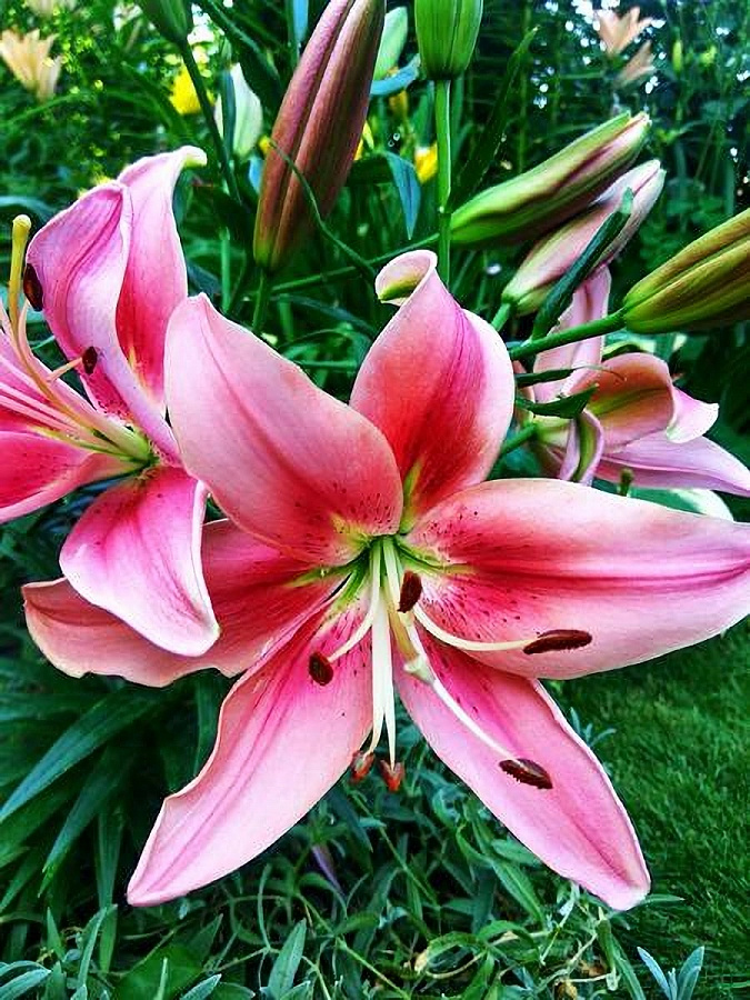 Лилия оа-гибрид чайлд ин тайм - это великолепное растение с ярко-розовыми цветками, украшенными пурпурными треугольными пятнами. Ее стебель прочный и прямой, достигает впечатляющей высоты, а размер цветка поражает своей красотой - до 16 см в диаметре. Листья лилии имеют изящную форму, что придает растению особый шарм.