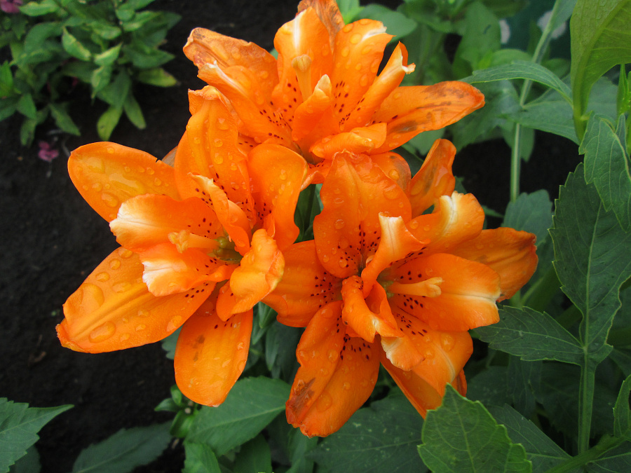 Луковицы лилии Orange Twins рекомендуют высаживать на хорошо освещенные участки, защищенные от ветра. Главные достоинства сорта: неприхотливость,  беспроблемность выращивания, морозостойкость, устойчивость к болезням и вредителям. Период цветения начинается в конце июня. Цветок махровый, состоит из трех рядов ярко-оранжевых лепестков с темным крапом в серединке. Высота 90-120 см. Лилии Orange Twins используются в групповых посадках, смешанных цветниках, для выращивания на срез.