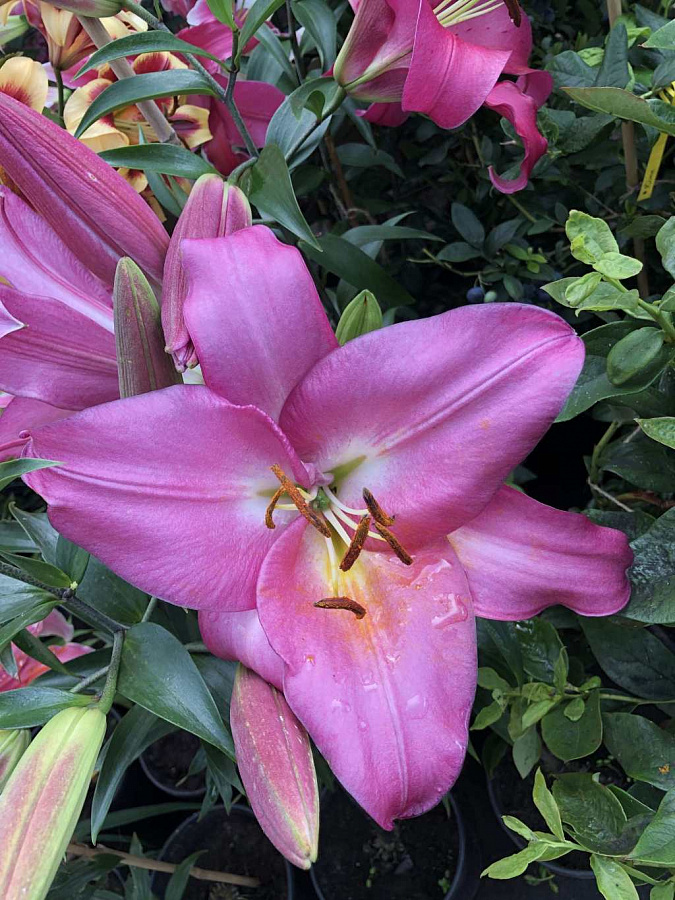 Саженцы и рассада лилии от-гибрид Донато (Lilium OT-hybrids Donato) отличаются обильным цветением. На одном цветоносе может расположиться более 25 цветков. Расцветка немного фантазийного розового оттенка. Очень гармонично смотрятся темные тычинки на фоне практически белого углубления бутона.