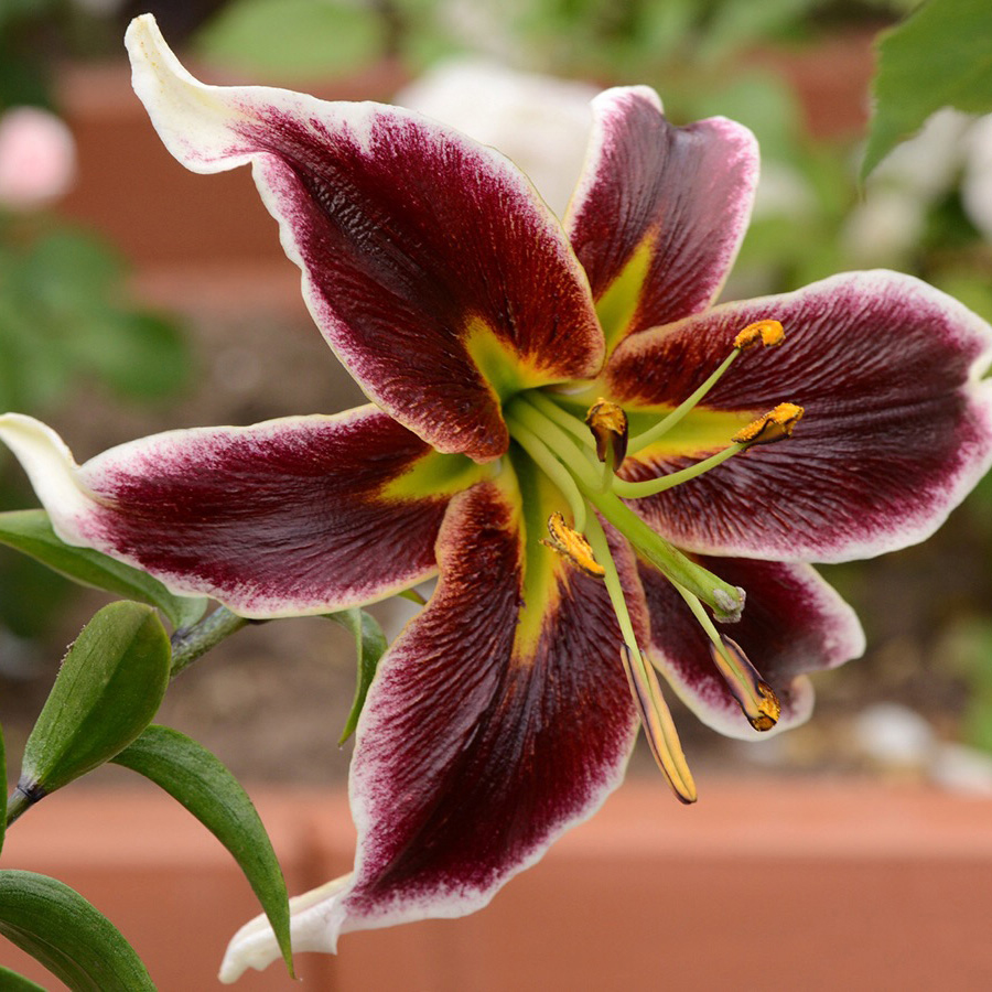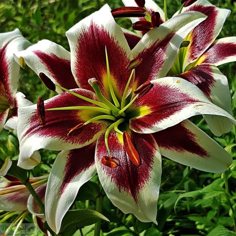 • Окраска цветка : насыщенный, винный с белой каймой и зеленовато-желтой звездочкой в центре