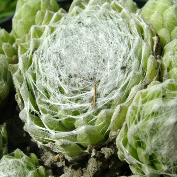 Саженцы молодила паутинистого кровельного (Sempervivum arachnoideum) высаживают на небольшом расстоянии друг от друга. Растение любит солнечный свет, переносит засуху и полутень, но не выдерживает застоя влаги. Формирует многочисленные розетки из мясистых зеленых листьев. Расцветает в середине июня и радует цветением до конца августа. Цветы звездообразные, собранные в небольшие соцветия розового оттенка. Декоративный многолетник используется для озеленения газонов, миксбордеров, каменистых горок. Эффектно смотрится в одиночных и групповых посадках с другими культурами.