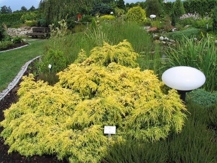 Крупномеры отличаются активным ростом и неприхотливостью к почвам. Этот сорт чаще всего используют для оформления небольших садов или ландшафтных композиций. Можжевельник Пфитцериана Голден Сауке достаточно зимостоек и светолюбив, в тени окраска хвои может тускнеть. Хорошо переносит нерегулярный полив.