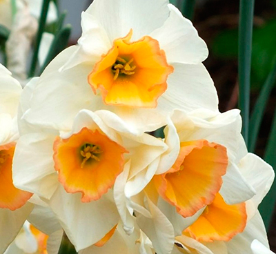 Окраска цветка : белый, коронка желтая с оранжевой каймой.