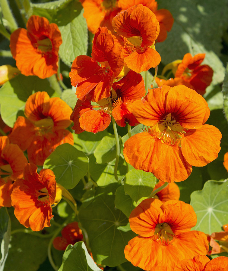 Семена настурции «Оранжевый блик» высевают сразу в открытую почву в мае. При температуре более 20 градусов первые всходы должны появится через две недели. Место для рассады настурции «Оранжевый блик» выбирают хорошо освещенное или частично затененное. Если проводить частый полив и делать подкормки, то растение будет более обильно цвести. Период цветения сорта семян настурции «Оранжевый блик» длится с начала июля до первых заморозков. Цветы средние по размеру и окрашены в ярко-оранжевый оттенок. Используют однолетник для вертикального озеленения участка (патио, беседок и так далее). Высота стеблей достигает до полутора метров.