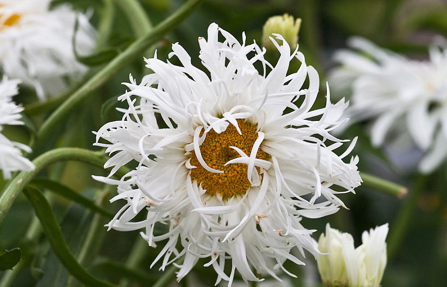 Этот сорт хризантемы радует своими крупными цветками диаметром до 12 см, окрашенными в белый цвет с ярким желтым центром. Нивяник наибольший крейзи дейзи предпочитает солнечные и полутенистые места для посадки, а также плодородные почвы. Он легко переносит засуху, но требует регулярного полива и удобрений для обильного цветения.