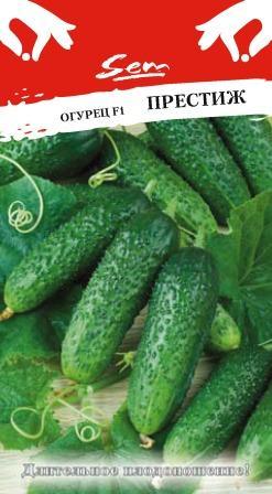 Семена огурцов "Престиж F1" превращаются в мощные, индетерминантные, среднерослые, среднеплетистые, с букетным типом завязи кусты. Период от посева до сбора урожая составляет 42-45 дней. Полностью созревшие плоды в длину достигают 12 см. Они имеют цилиндрическую форму и бугорчатую поверхность. Мякоть хрустящая, без присутствия горечи, покрыта тонкой и ароматной кожурой. Плоды из семян огурцов "Престиж F1" используются не только для приготовления салатов, но и для консервированной продукции.