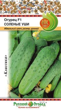 Семена огурцов "Соленые уши F1" высевают на рассаду в начале мая. Высадка всходов в грунт происходит в конце мая — начале июня. Посев семян огурцов "Соленые уши F1" в открытый грунт осуществляют в конце мая— начале июня. Срок созревания составляет 50-55 дней от появления всходов. Плоды крупнобугорчатые, с плотной кожицей. В длину достигают до 9-10 см. Вкусовые качества плодов отменные, горечь отсутствует. Используют урожай для потребления в свежем виде, а также засолки и консервации.