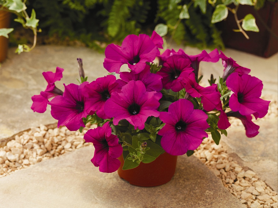 Петуния F1 шок дип парпл имеет ампельную форму, что делает ее идеальным выбором для вертикального озеленения. Листья этого растения являются плотными и глянцевитыми, создавая эффектный контраст с яркими цветами. Для успешного выращивания петунии рекомендуется выбирать солнечные места и регулярно поливать растение.