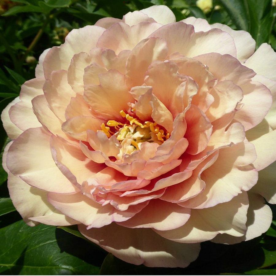 Рассада пиона ИТО Кенари Бриллиантс (Canary Brilliants), не доставит хлопот садоводу и превратится в декоративные кусты с очаровательными кудрявыми цветами. Взрослое растение – раскидистый, но компактный куст, не выше 1 м. Окраска цветов переливается оттенками от лососевого до персикового. Листва посеченная, темно-зеленая. Прочные побеги хорошо удерживают пышные соцветия. Основание ствола покрывается древесной корой. Особенности посадки пиона Кенари Бриллиантс: