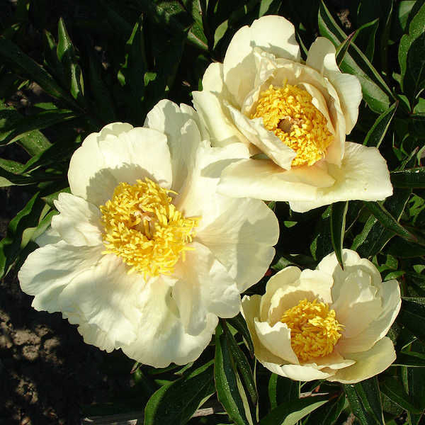 Пион сорта Claire de Lune (Клэр де Луне) отличается своим нежным и сильным ароматом во время цветения. Каждый порыв ветра помогает запаху распространяться по саду. Сам кустарник выглядит компактно, его высота не превышает 70 см, листва густая. Оттенок пионов необычный бледно-желтый, почти кремовый. Цветение начинается рано, что выгодно выделяет растение из всех известных сортов. Пион Клэр де Луне не оставит никого равнодушными во время своего цветения. Он отлично украсит газоны. Растению требуется умеренное увлажнение и дренирование, а также внесение удобрений летом. В первый год после пересадки кустарника его можно не удобрять.