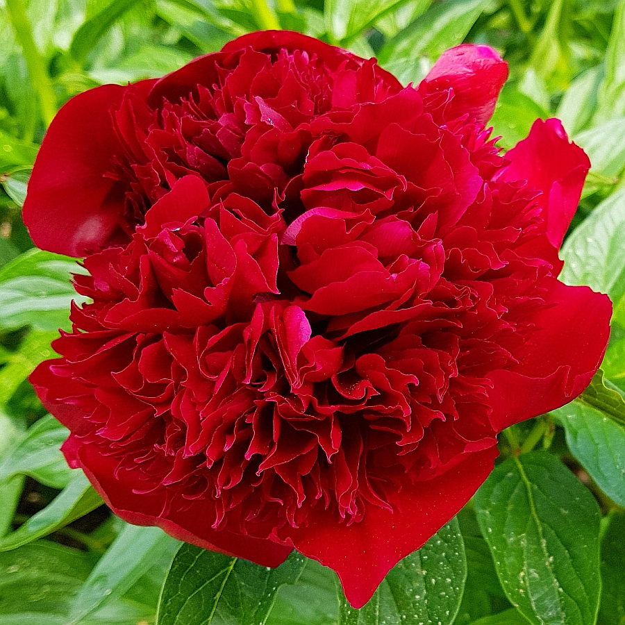 Рассада пиона молочноцветкового Ред Шарм (Raspberry Clown) вырастет в многолетнее украшение сада, обильно цветущее пышными темно-красными соцветиями. Сорт – многократный чемпион выставок. Легко приживается, долго цветет и растет без пересадки десятки лет. Цветки – густые, плотные с насыщенным оттенков лепестков. Глубокий красный цвет пионов не выгорает на солнце. Цветы великолепны в срезке. Стебли крепкие, листья темно-зеленые, удлиненной формы. Из семян сорт прорастает дольше, чем при других способах посадки. Особенности пиона Ред Шарм: